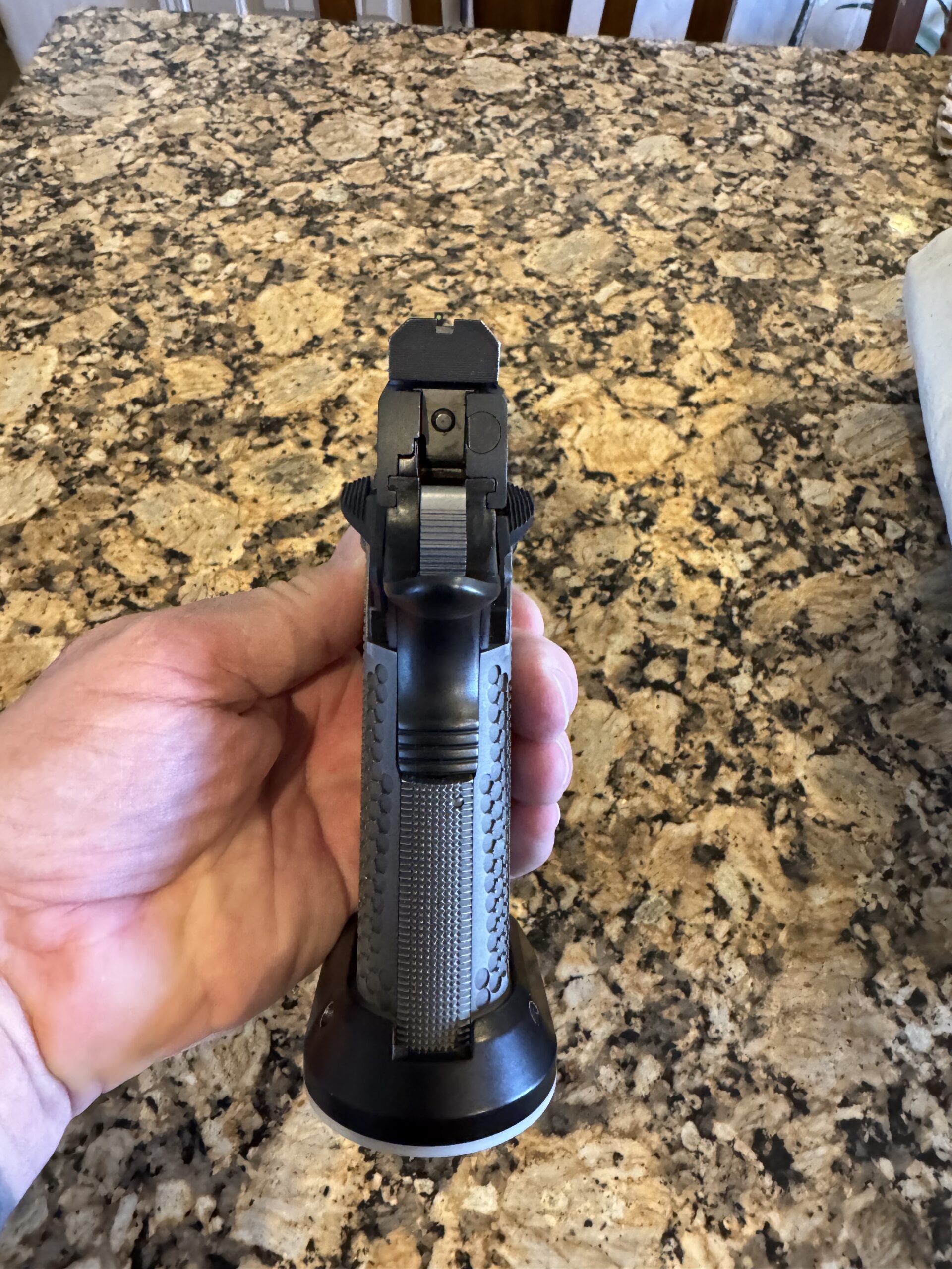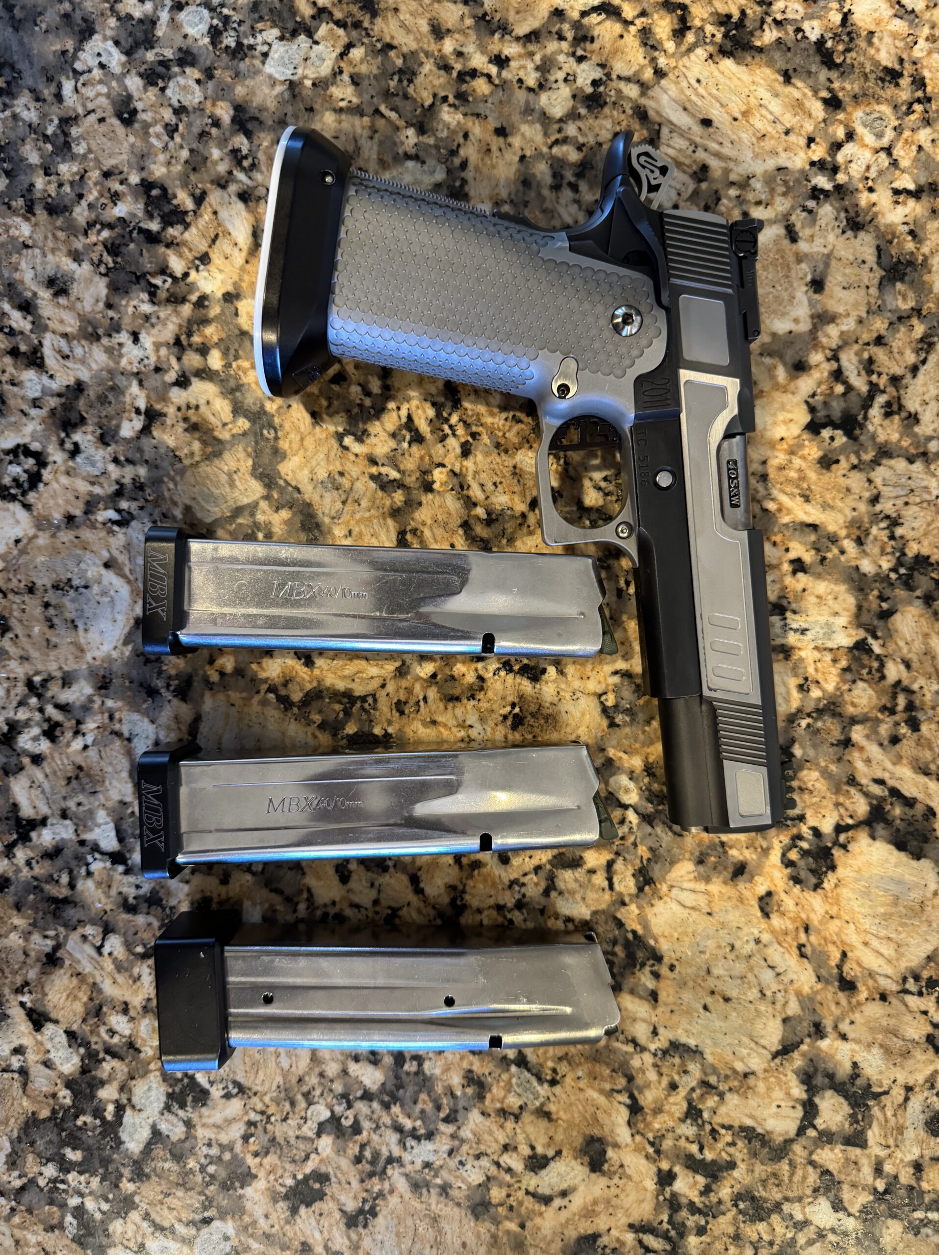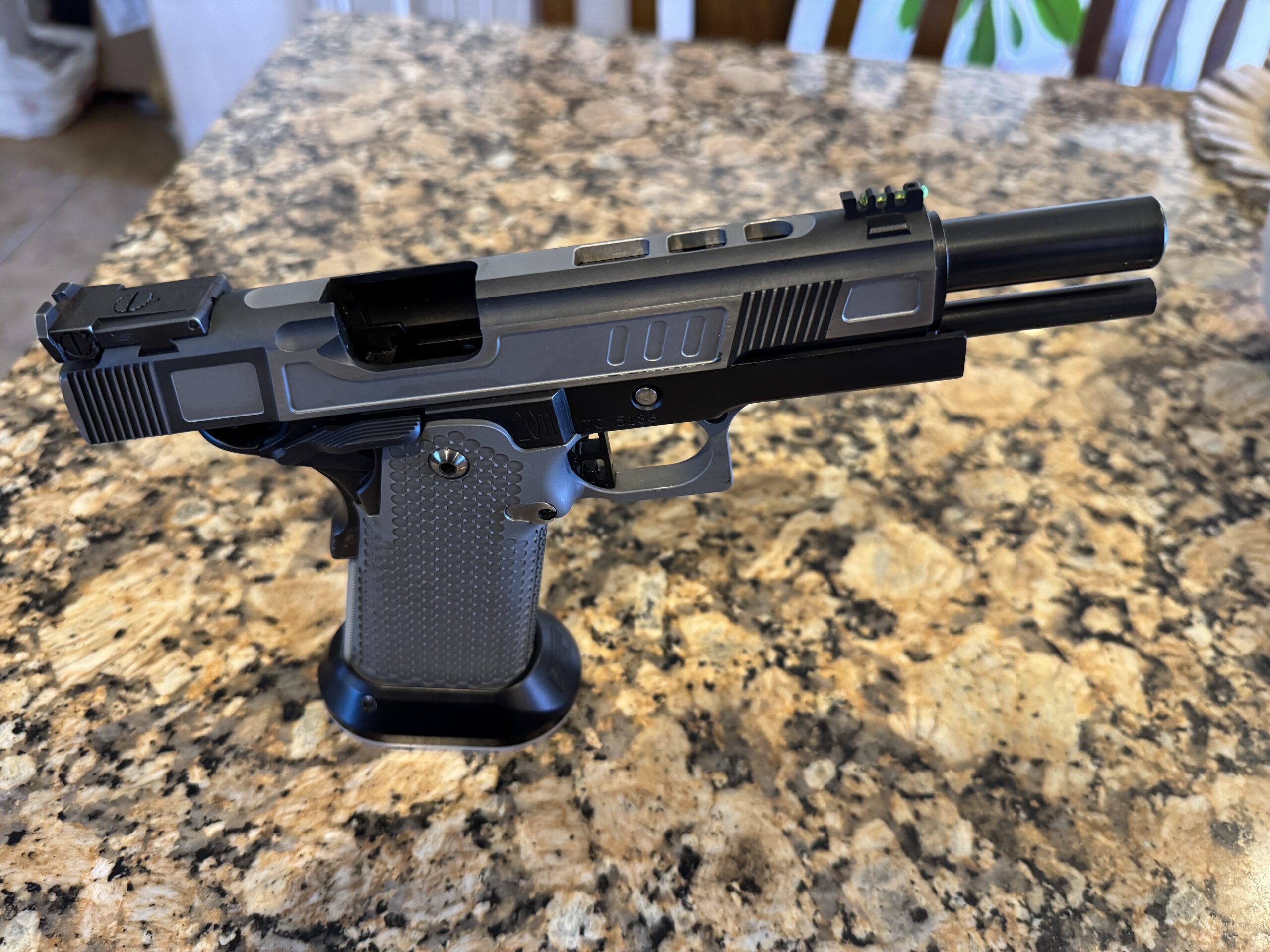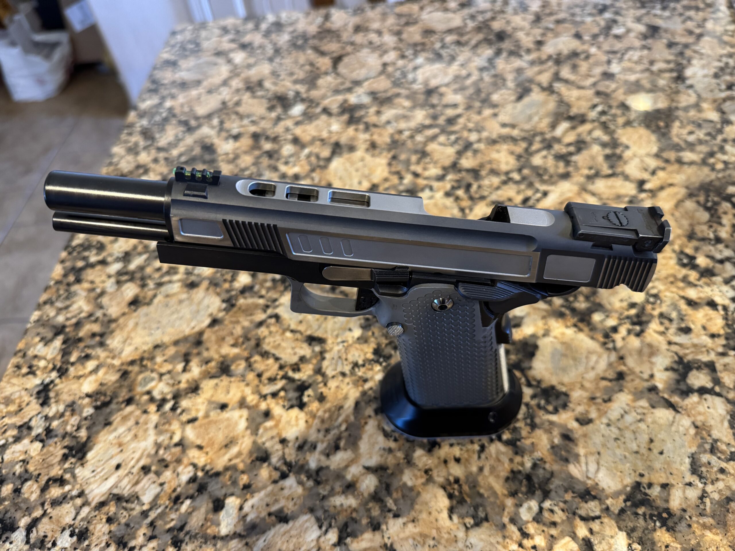 I purchased this pistol from local shooter Nando Trujillo. I shot it at a handful of matches then added the Phoenix Trinity stainless grip and (SVI) Infinity internals and hammer.I also sent the slide to Impact Machine and had it lightened. I’ve shot a couple other matches with it and it shoots awesome. I just don’t shoot as much as I like and would rather someone put it to use rather than just sitting in my safe.