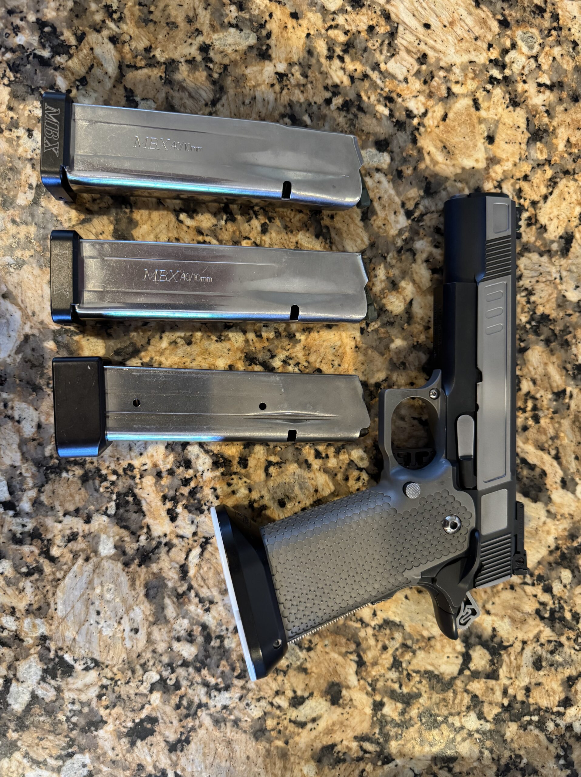 Predator Tactical 2011, 40 caliber, limited pistol with 1 factory mag and 2 MBX mags.